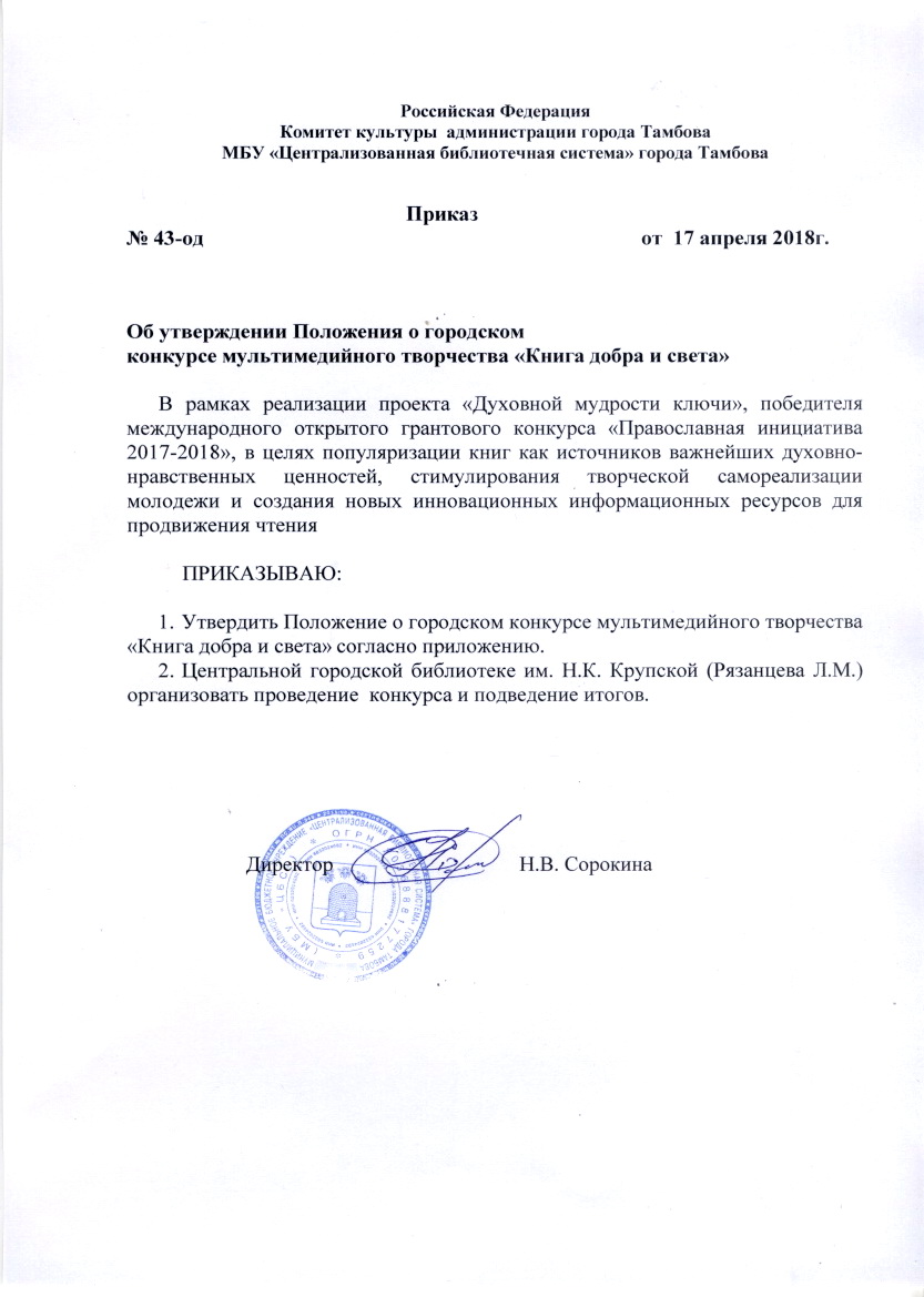 Приказ об утверждении Положения о конкурсе